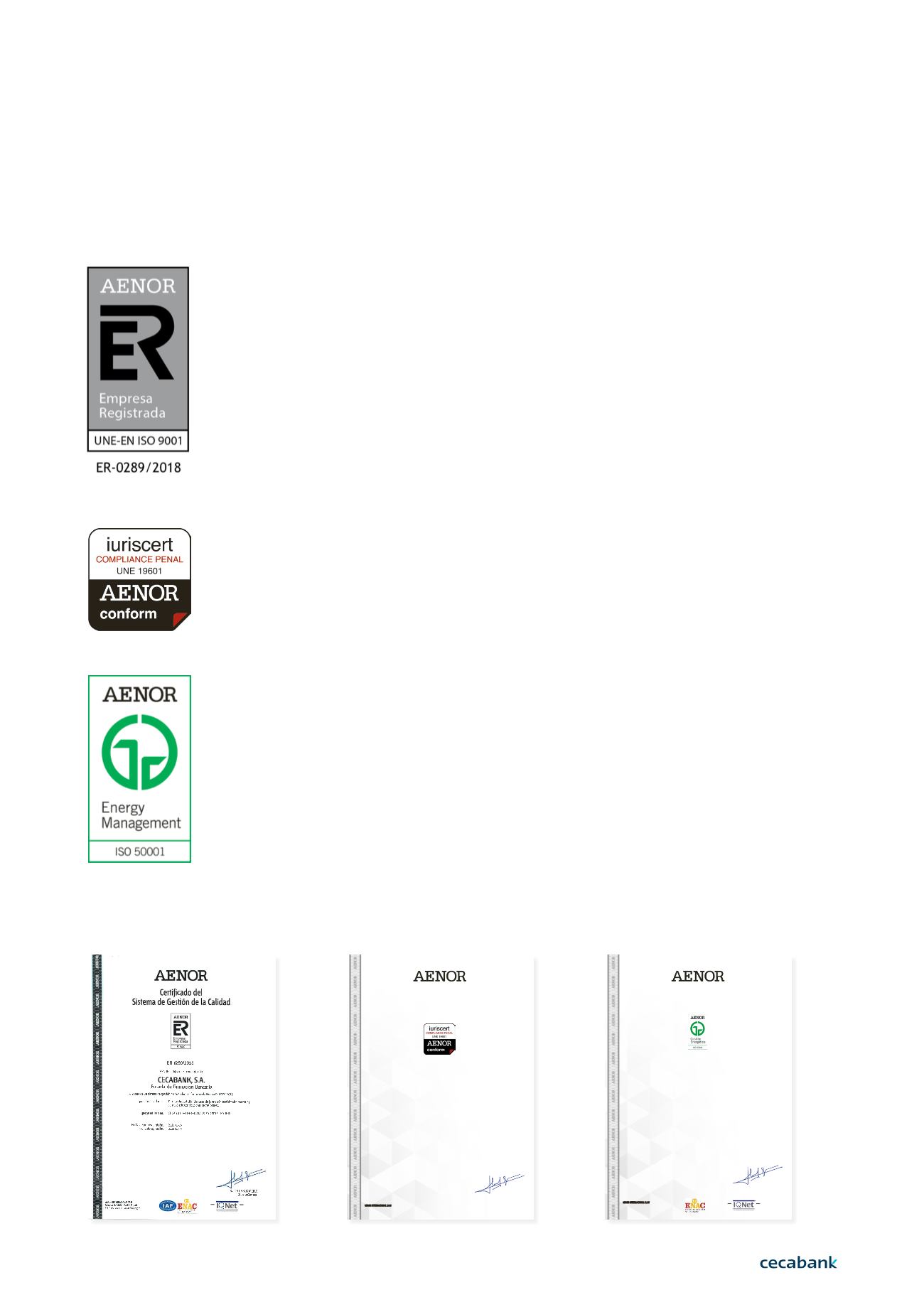 de gestión certificados para la totalidad de Cecabank:
