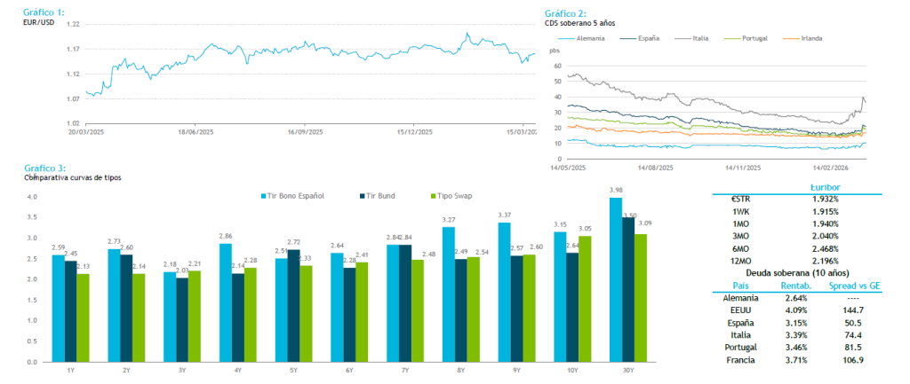 Del BCE ha salido el gobernador croata, Vujcic, comentando que, aunque aún no se observa una estanflación plena, el peligro de combinar un crecimiento económico débil con una inflación elevada va en aumento. Recordó que el mandato del banco central es garantizar la estabilidad de precios, e insistió en que la institución deberá actuar con agilidad y vigilancia para mantener la inflación en torno al 2%, incluso si el conflicto se prolonga y ejerce presiones adicionales sobre los precios y la actividad económica.