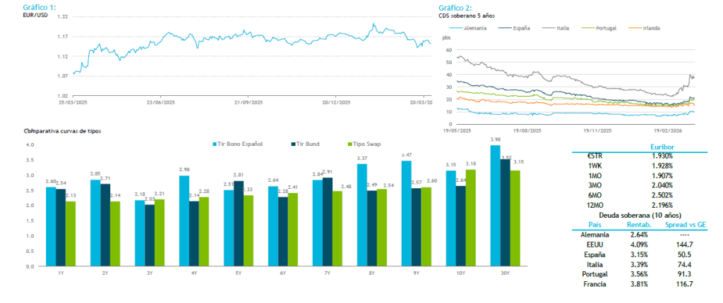 En el mercado de divisas, el euro permanece bajo presión, condicionado por la sensibilidad de la Eurozona a los precios de la energía y por las noticias procedentes de Alemania sobre la posible subida del IVA del 19% al 21%, factores que refuerzan el sesgo bajista del EUR, que vuelve a aproximarse a la cota de 1,15.
