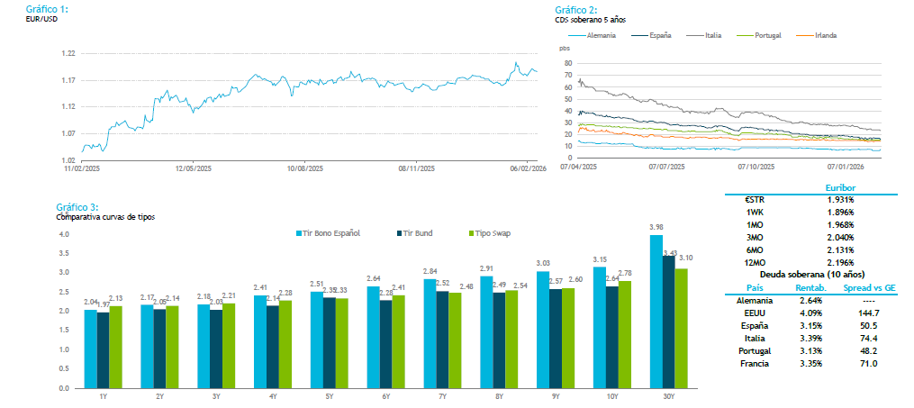 Descensos ayer en los índices americanos de entre un 1.30% y un 2%. Uno de los catalizadores fue Cisco quien llegó a caer un 10% tras decepcionar sus previsiones de beneficio para el próximo trimestre ante la escasez de chips. Las empresas de chips están priorizando los pedidos de la IA , dejando sin materiales a otras compañías como Cisco. El t-note cayó 7 puntos básicos hasta marcar el 4.10%. Según el Financial Times, Trump se está planteando reducir los aranceles a las importaciones de aluminio y al acero que actualmente se encuentran en el 50%. Esta mañana ha habido declaraciones de Kazaks quien ha comentado que no es momento para que el ECB mueva los tipos de interés y que el ECB tiene que ver el impacto de la apreciación del euro en la economía. En la agenda del día el dato más relevante es el IPC en EEUU que se publicará a las 14:30. La semana concluye con un volumen en el mercado primario de renta fija superior a los 70 bios euros emitidos en Europa incluyendo 15.25 bios emitidos ayer por compañías americanas tales como Goldman. Para la semana que viene esperamos un menor volumen de emisiones, aproximadamente 50 bios de euros.